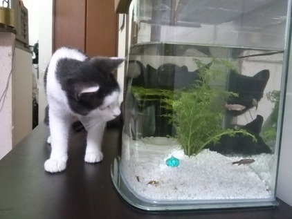 小さな水槽がお気に入りで良く覗いています!