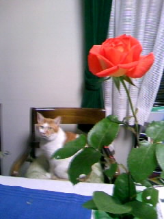 挿し木をして 咲いてくれた一輪と のんちゃん